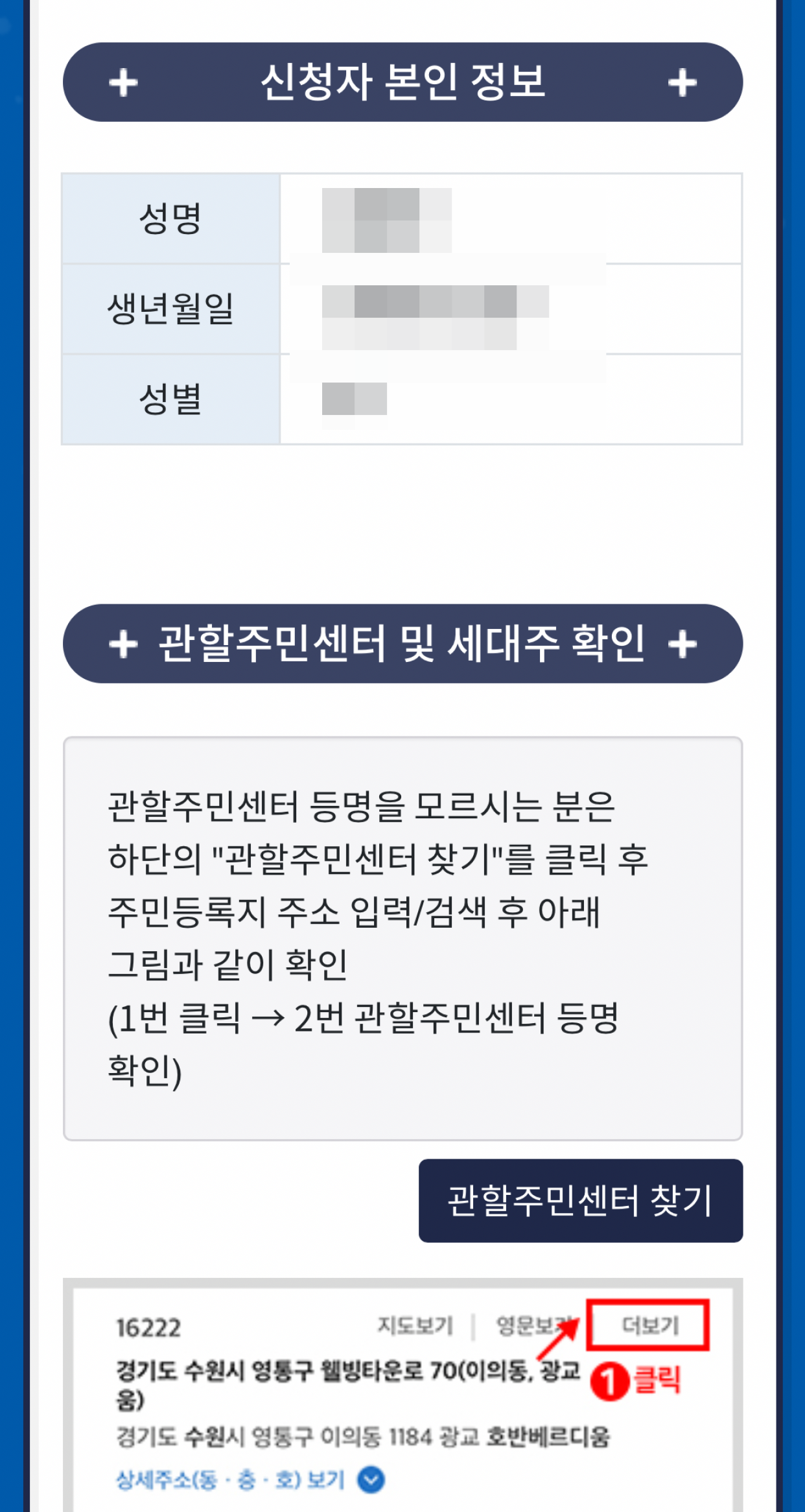 신청자 본인 정보 확인 페이지가 나타납니다.
