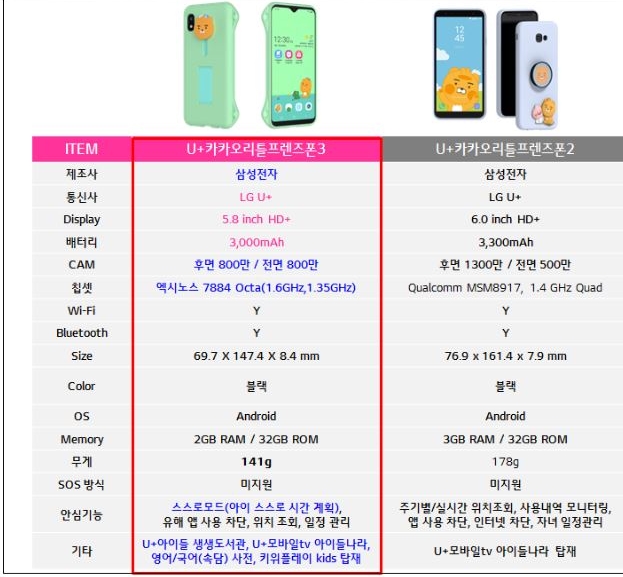 카카오프렌즈 키즈폰3 구입. 첫째의 첫 휴대폰. 등교 개학 대비