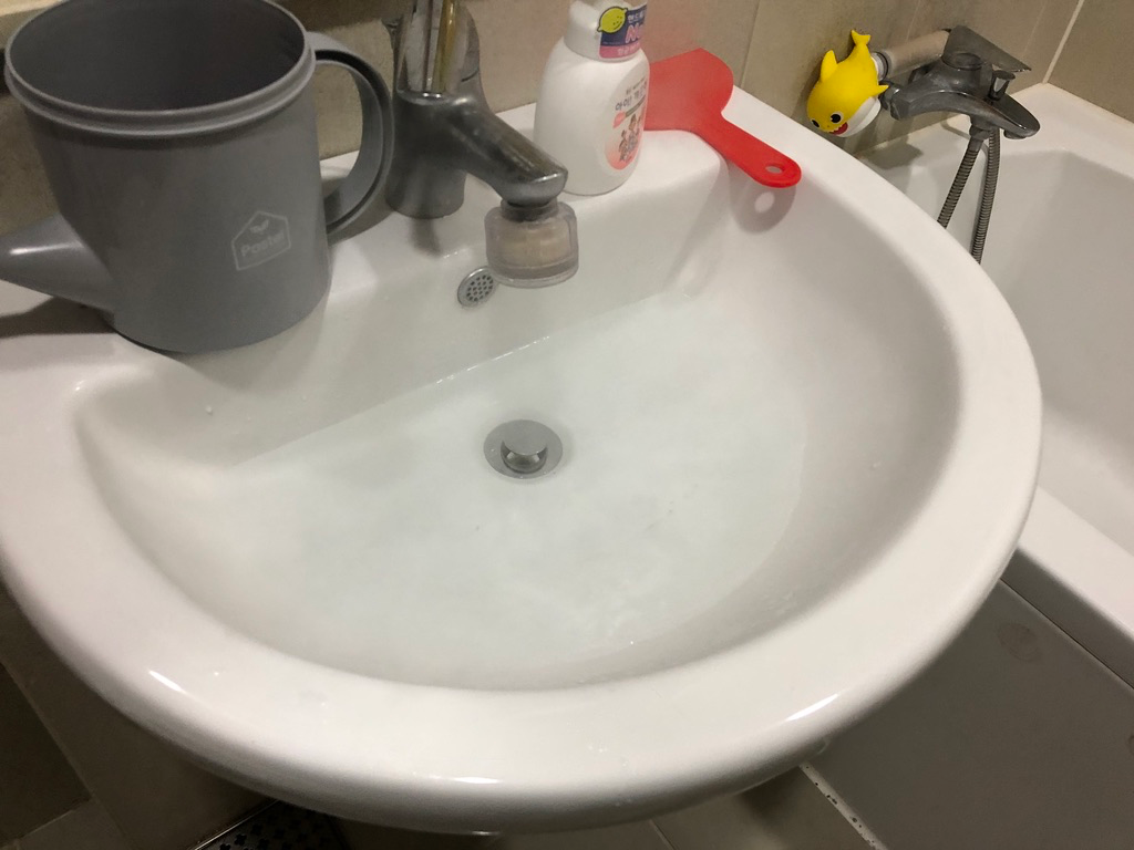 며칠 전부터 세면대에 물이 잘 안 내려가고 있습니다. 완전히 막힌 건 아니고 천천히 내려가는 상태입니다.
