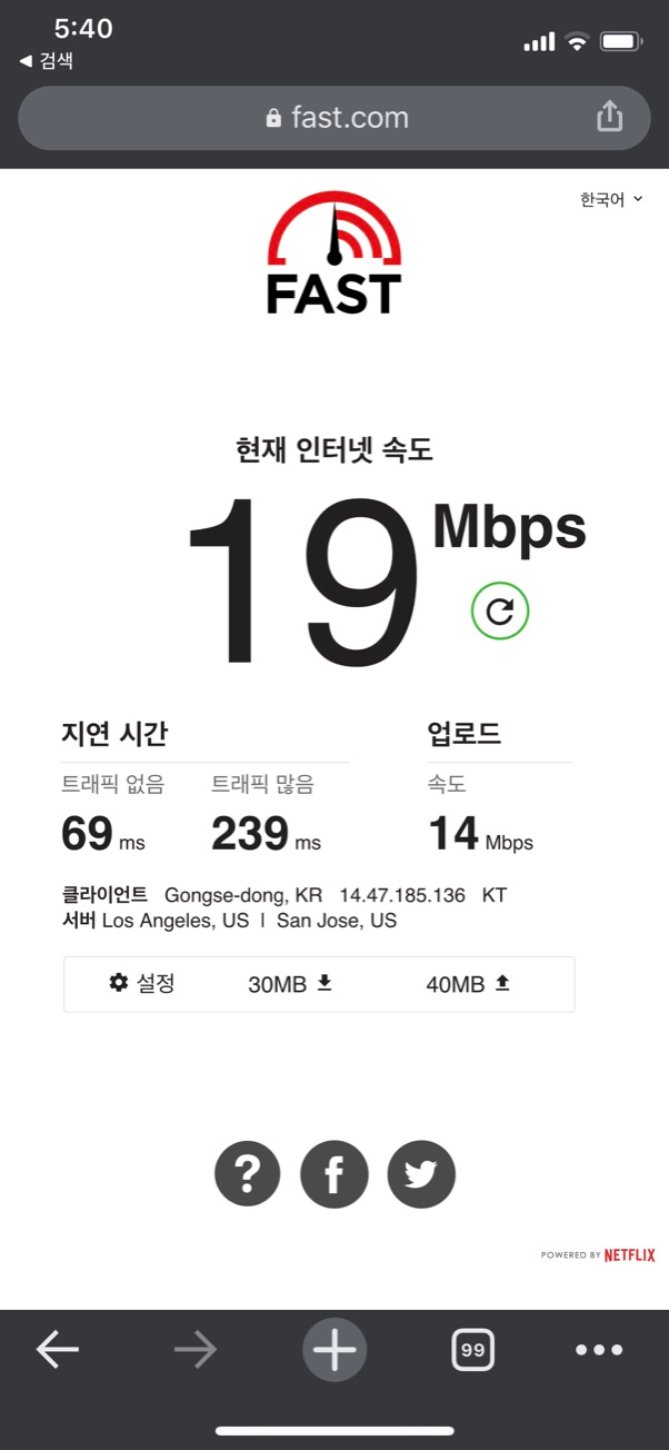오오 속도도 많이 좋아졌습니다. 거리가 멀지만 안테나 두 개라 그런지 신호가 잘 잡히네요.