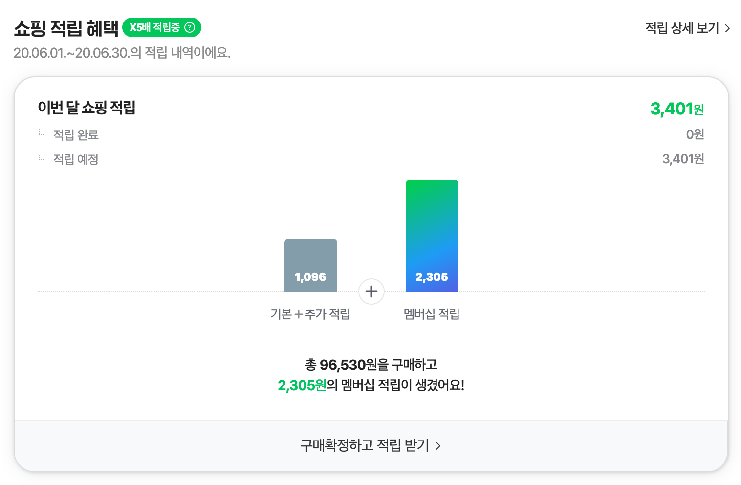 기본+추가 적립은 멤버십이 아니라도 받은 금액이기 때문에 2,305원이 순수하게 멤버십으로 생기는 추가 적립금입니다.