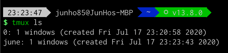 tmux ls 해 보면 세션 리스트를 확인할 수 있습니다.
