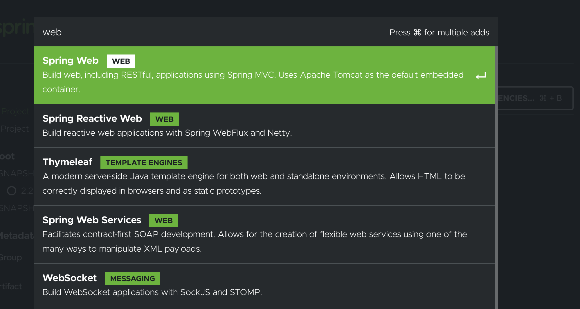보통 web프로젝트를 많이 만드는 편이라 "Spring Web"을 추가해 보았습니다.