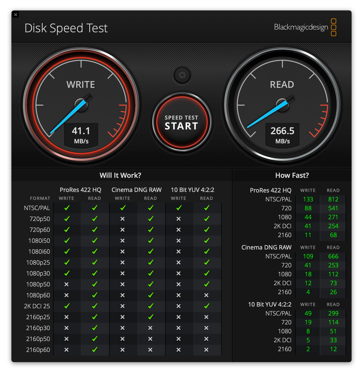 읽기 속도는 266MB/s로 꽤 괜찮은 속도가 나옵니다. 쓰기가 41MB/s 정도로 좀 약하긴 하지만 그래도 괜찮은 수준인 것 같습니다.