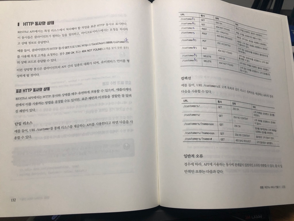 여기뿐 아니라 수많은 부분에서 단수형을 사용하는 부분이 보입니다. 사실 이 부분은 취향의 문제일 수도 있어서 오류라고는 할 수 없습니다. 다만 여러 RESTful API 가이드에서 복수형을 사용하라고 가이드하고 있고 저도 복수형이 여러모로 편리하다고 생각하고 있어서 책에서 단수형으로 된 부분도 일부러 복수형으로 고쳐서 실습하고 있습니다.