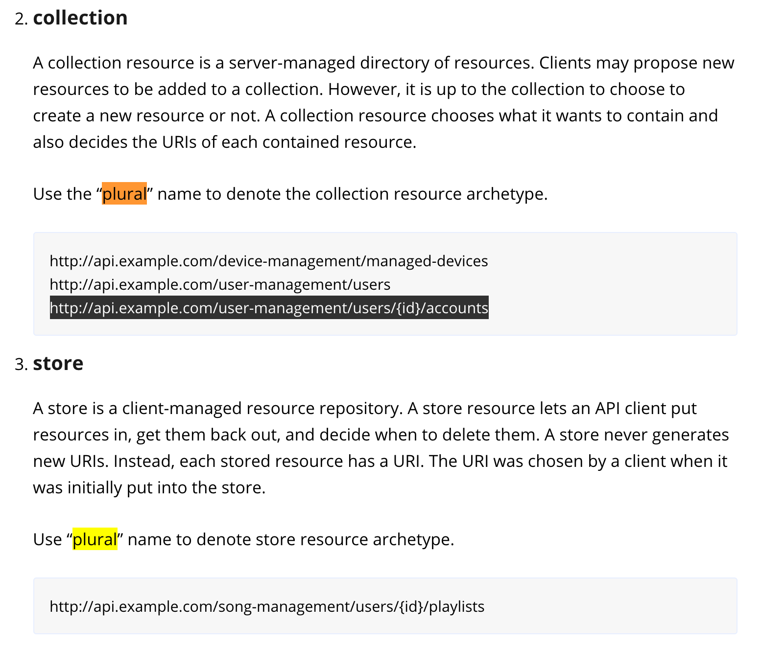 RESTful API 작성 시 단수형/복수형이 혼합되어 있음. 개인적으로 복수형을 선호