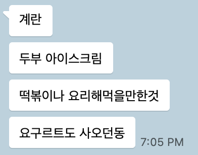 집에 가는 길에 장을 좀 봐 오기로 했는데 떡볶이를 사 오라고 합니다.