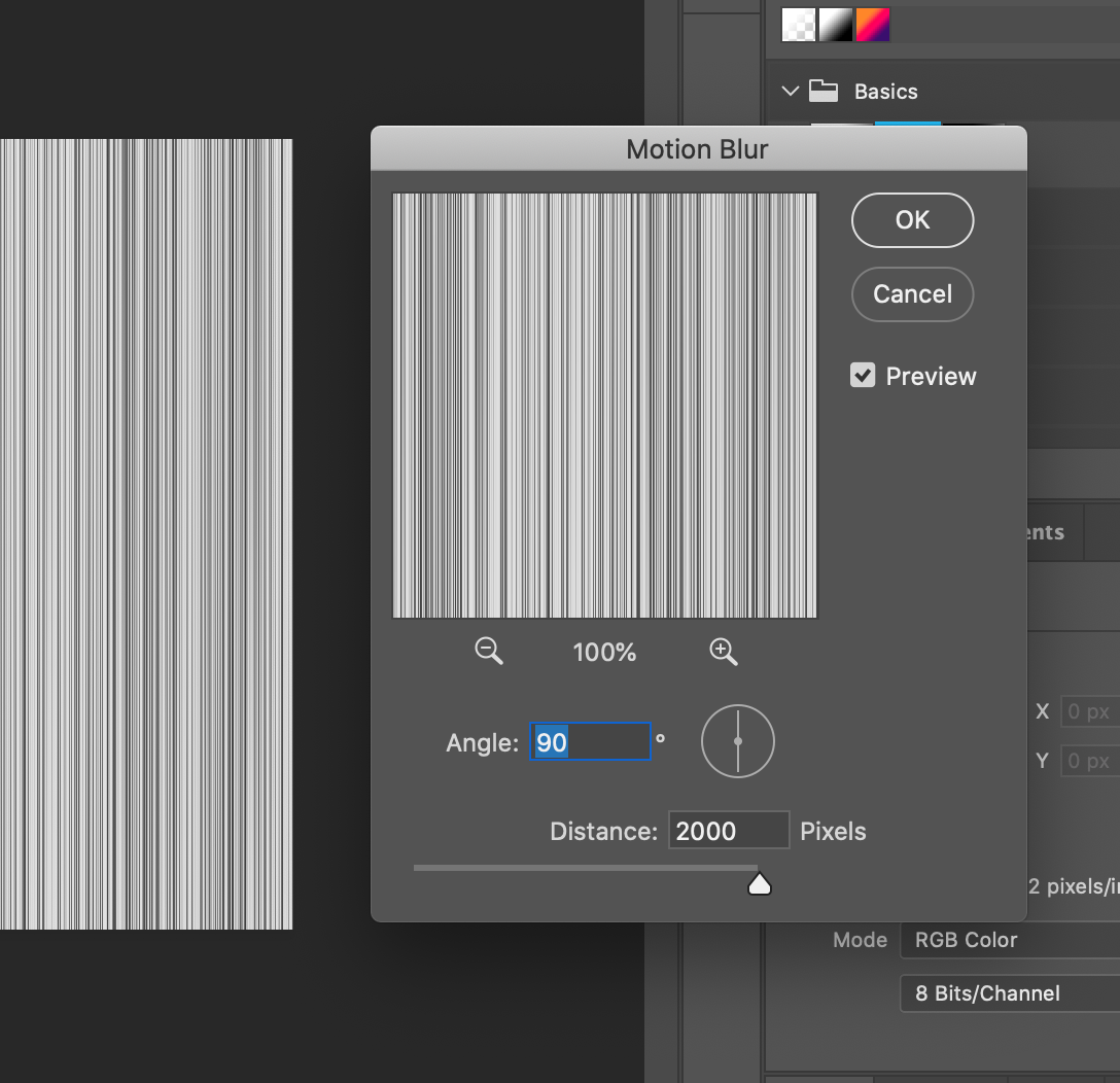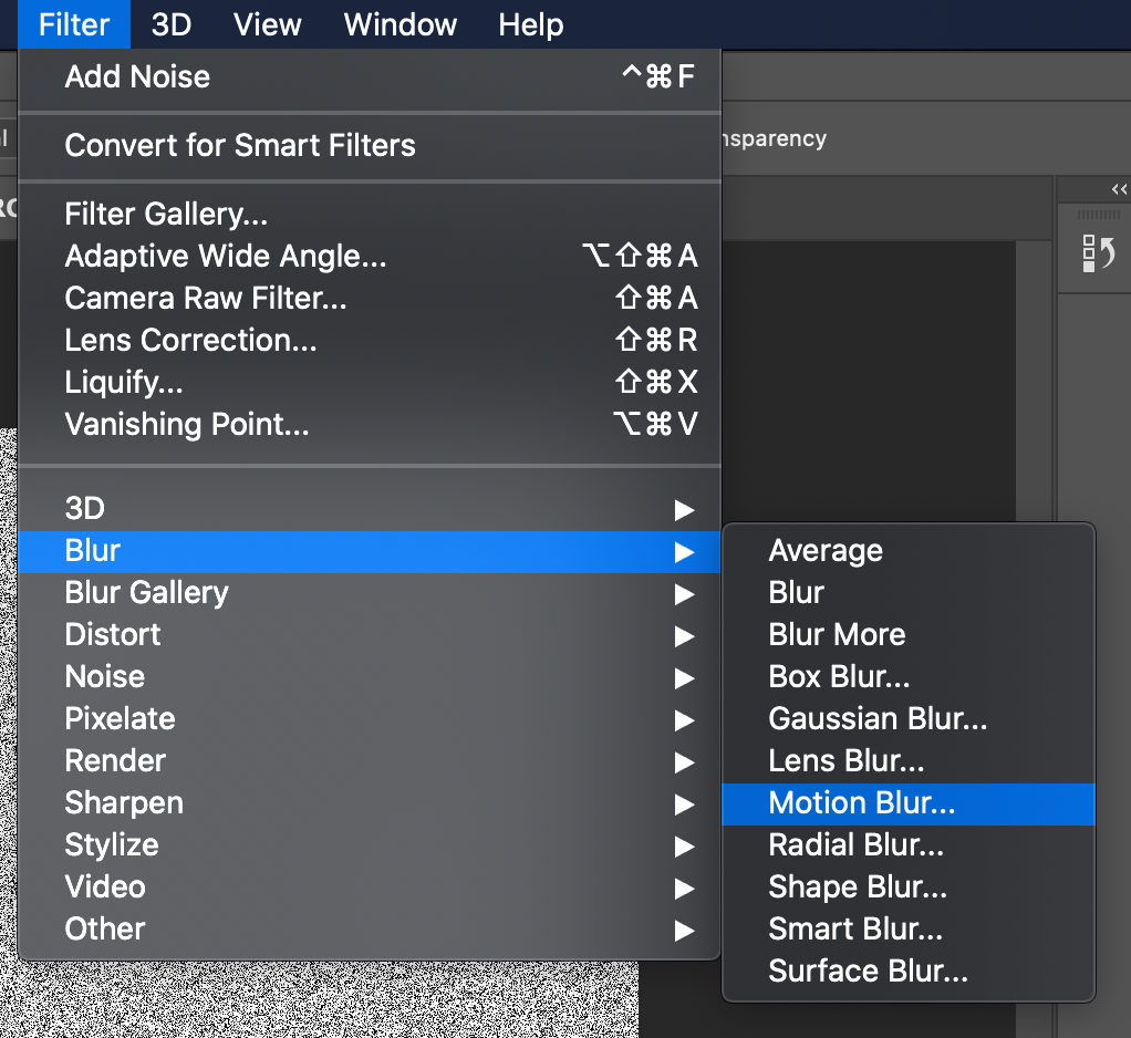 Filter -> Blur -> Motion Blur를 선택합니다.