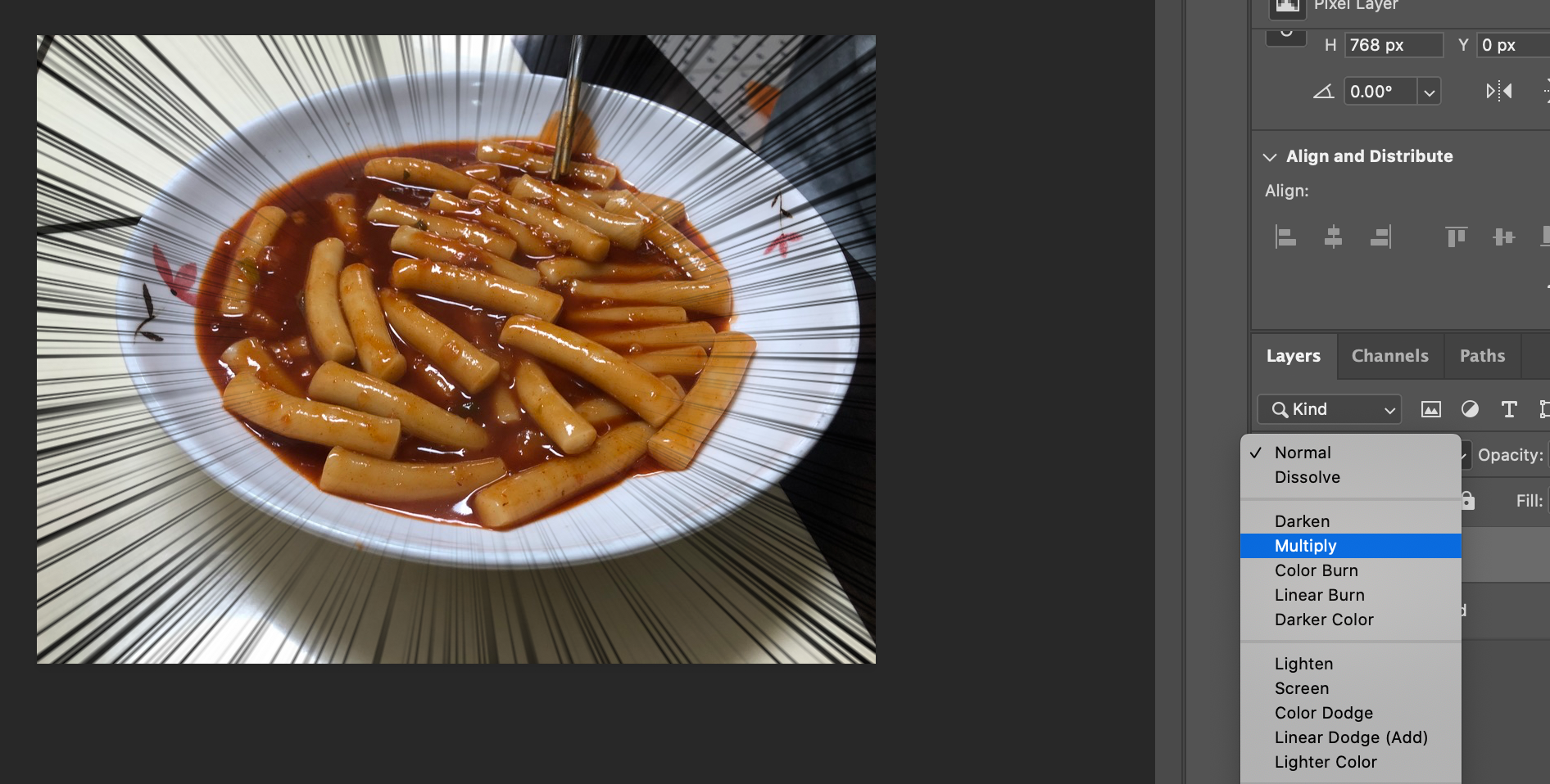 떡볶이 사진이 좀 칙칙한 거 같으니 떡볶이 이미지를 레벨 보정을 좀 해줍니다.