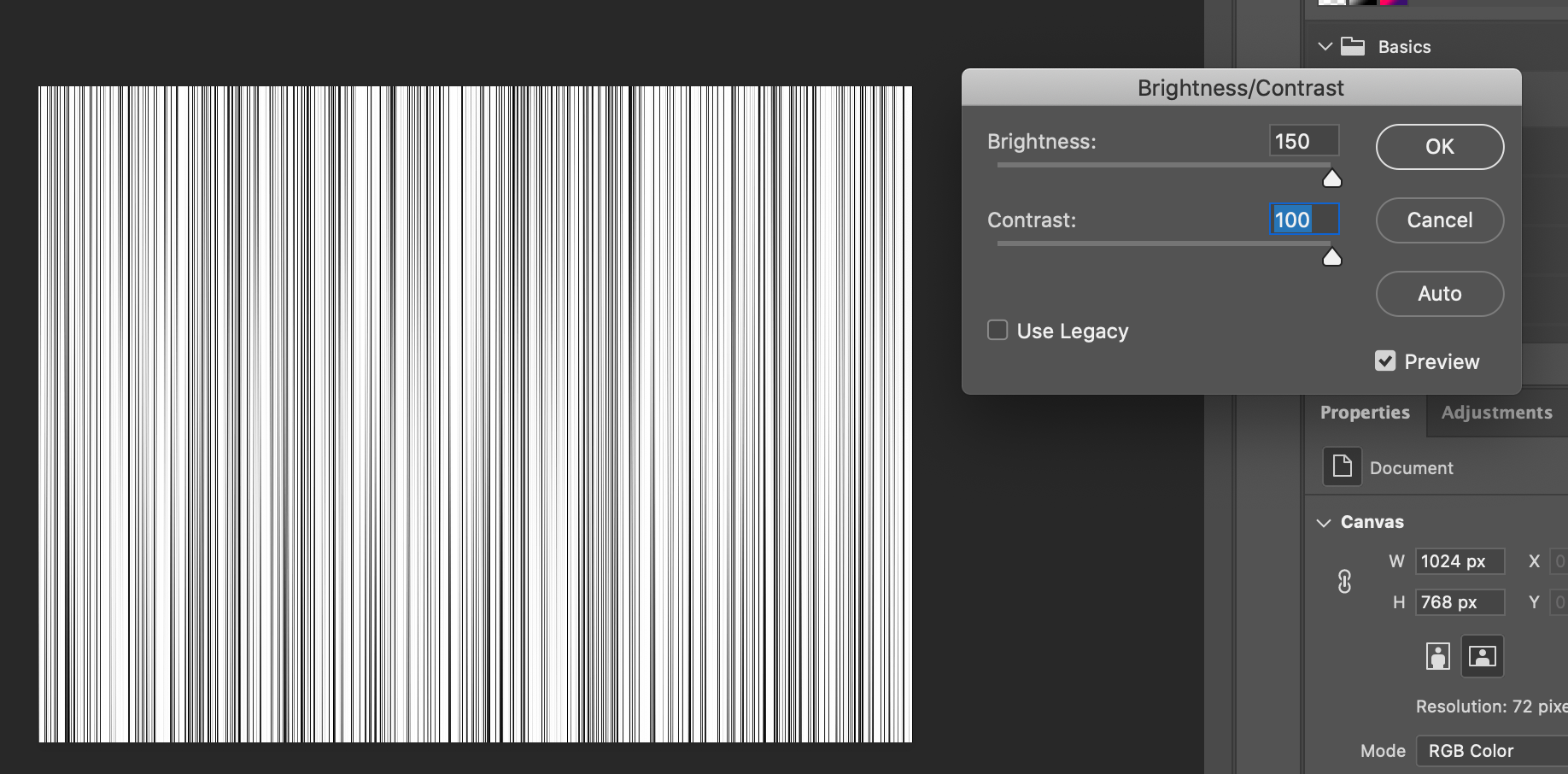 Image -> Adjustments -> Brightness/Contrast를 최대치로 적용해 줍니다.