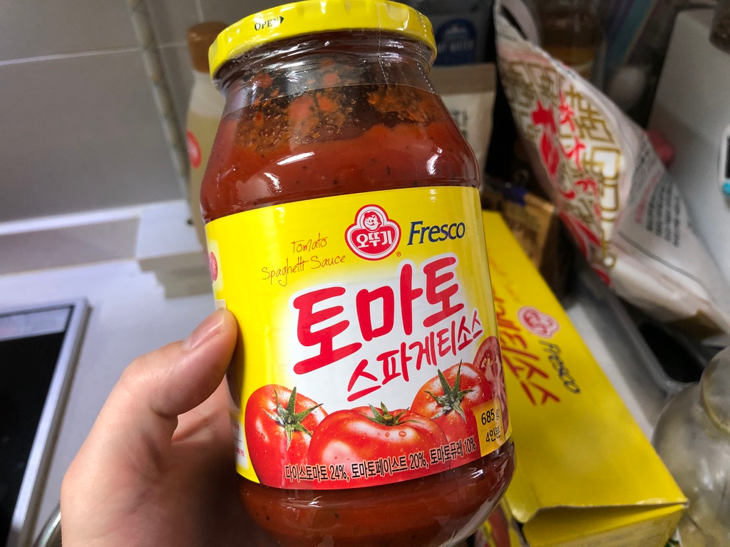 요즘 자주 사용하고 있는 토마토 스파게티 소스입니다. 맛이 괜찮더라고요.