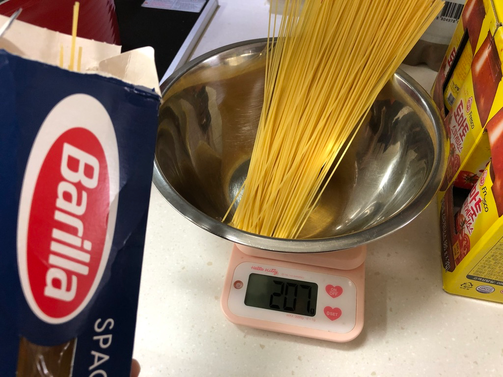 요즘 자주 사용하는 면은 스파게티 n3입니다. 1인분에 100g씩 사용하면 되고 5분간 삶아서 사용하면 됩니다.