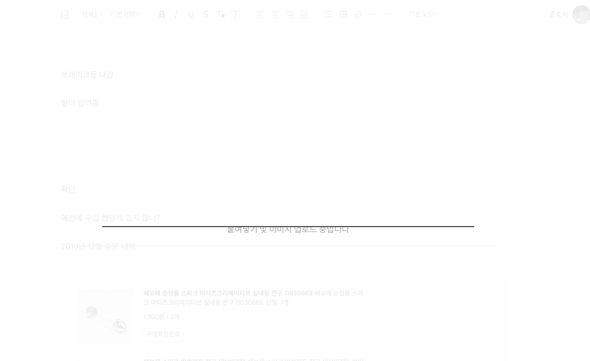 참고 삼아 에러 메시지가 보여서 같이 캡처를 해 두긴 했는데 아마도 이미지를 붙여 넣기 하다가 발생한 오류가 아닐까 싶습니다.