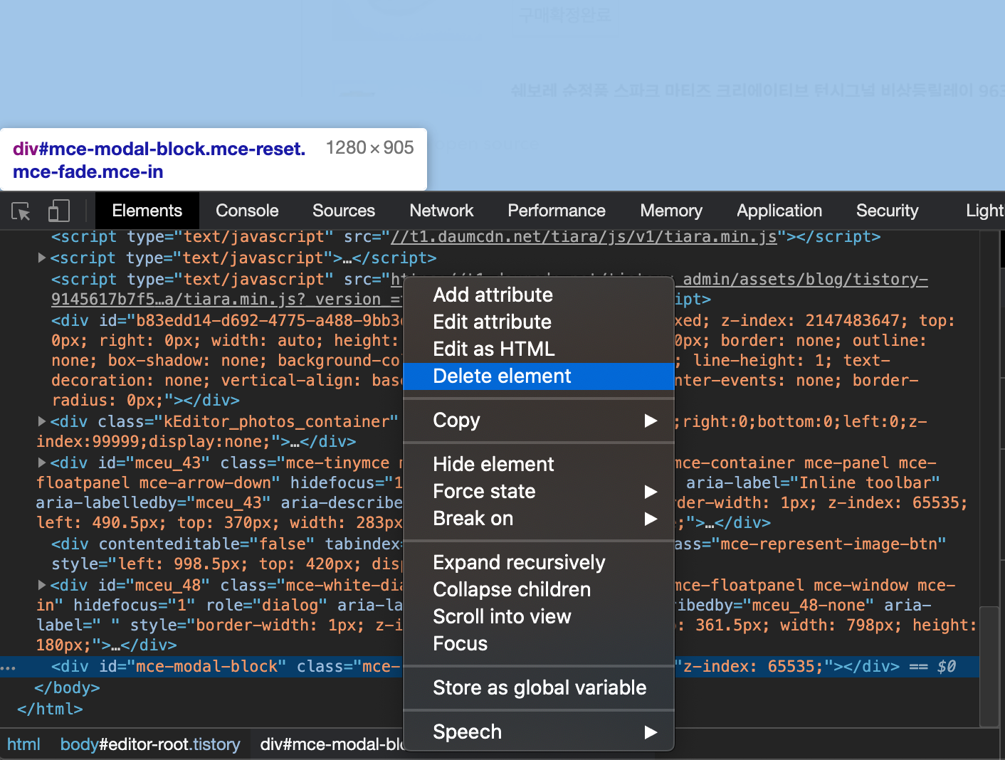 이미지 붙여 넣기를 할 때 나타나는 모달 블록을 강제로 지워버리는 것입니다.