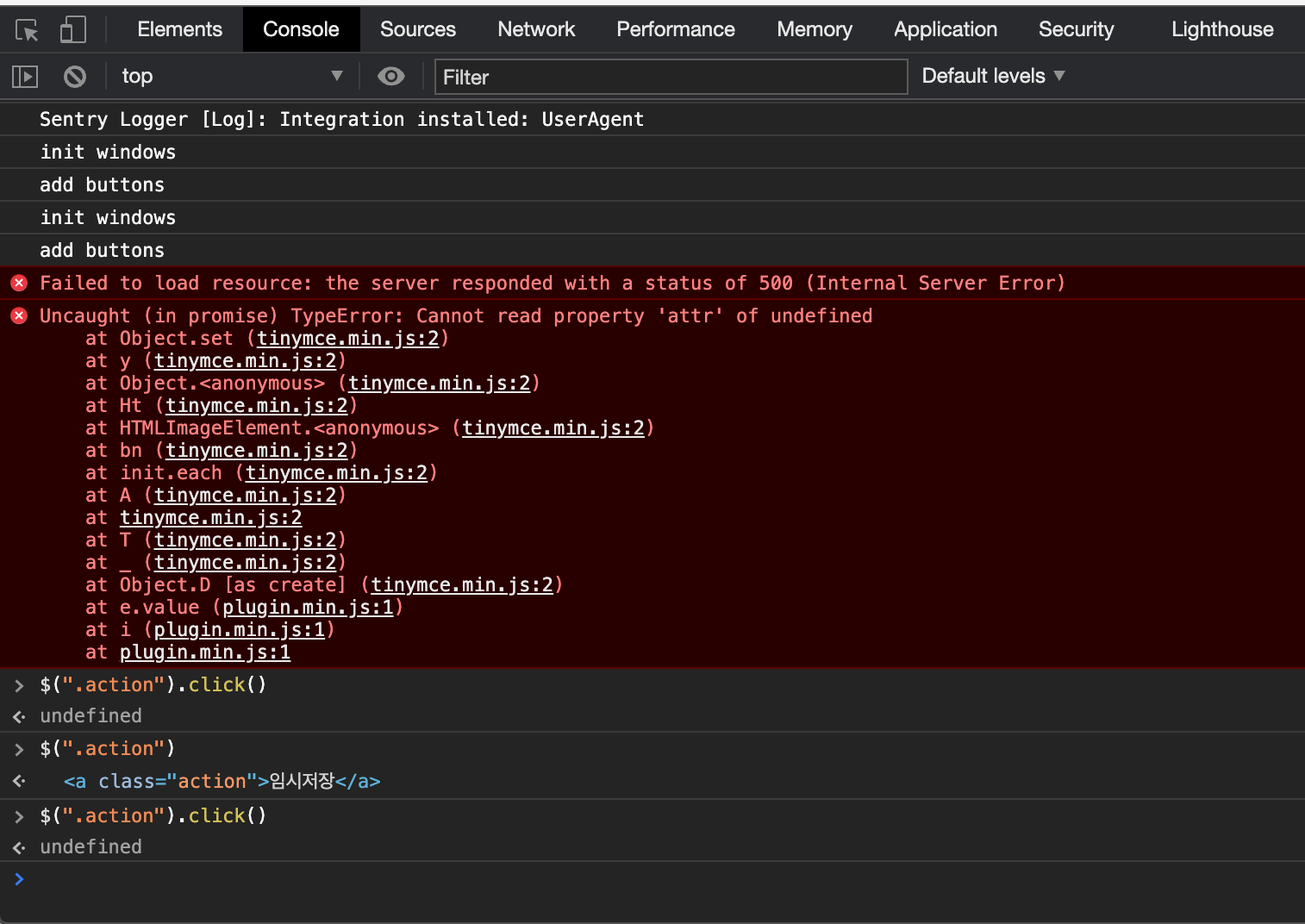 콘솔에서 자바스크립트로 "임시저장"버튼 클릭 이벤트 날리기