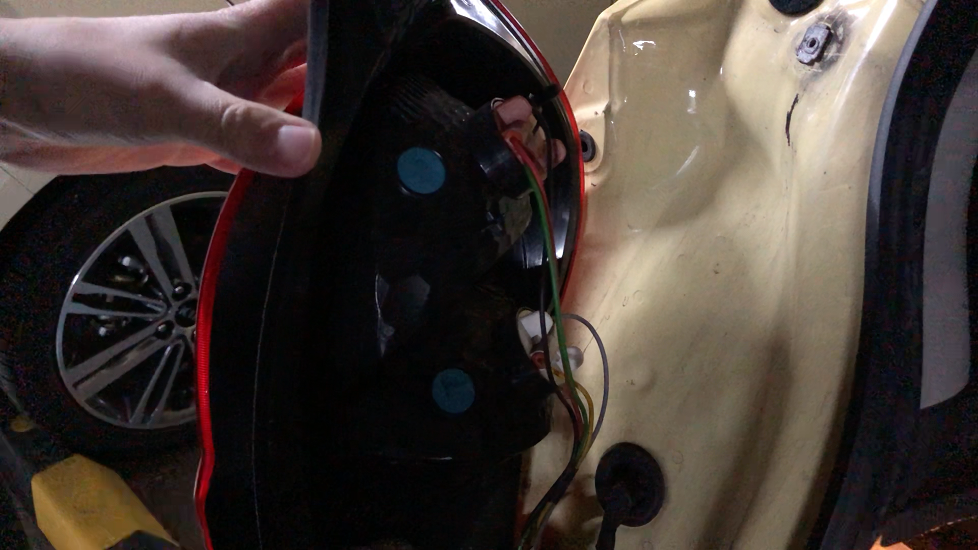 가장 위쪽에 있는 붉은색 구멍이 브레이크등을 끼우는 부분입니다. 왼쪽으로 돌리면 빠집니다.