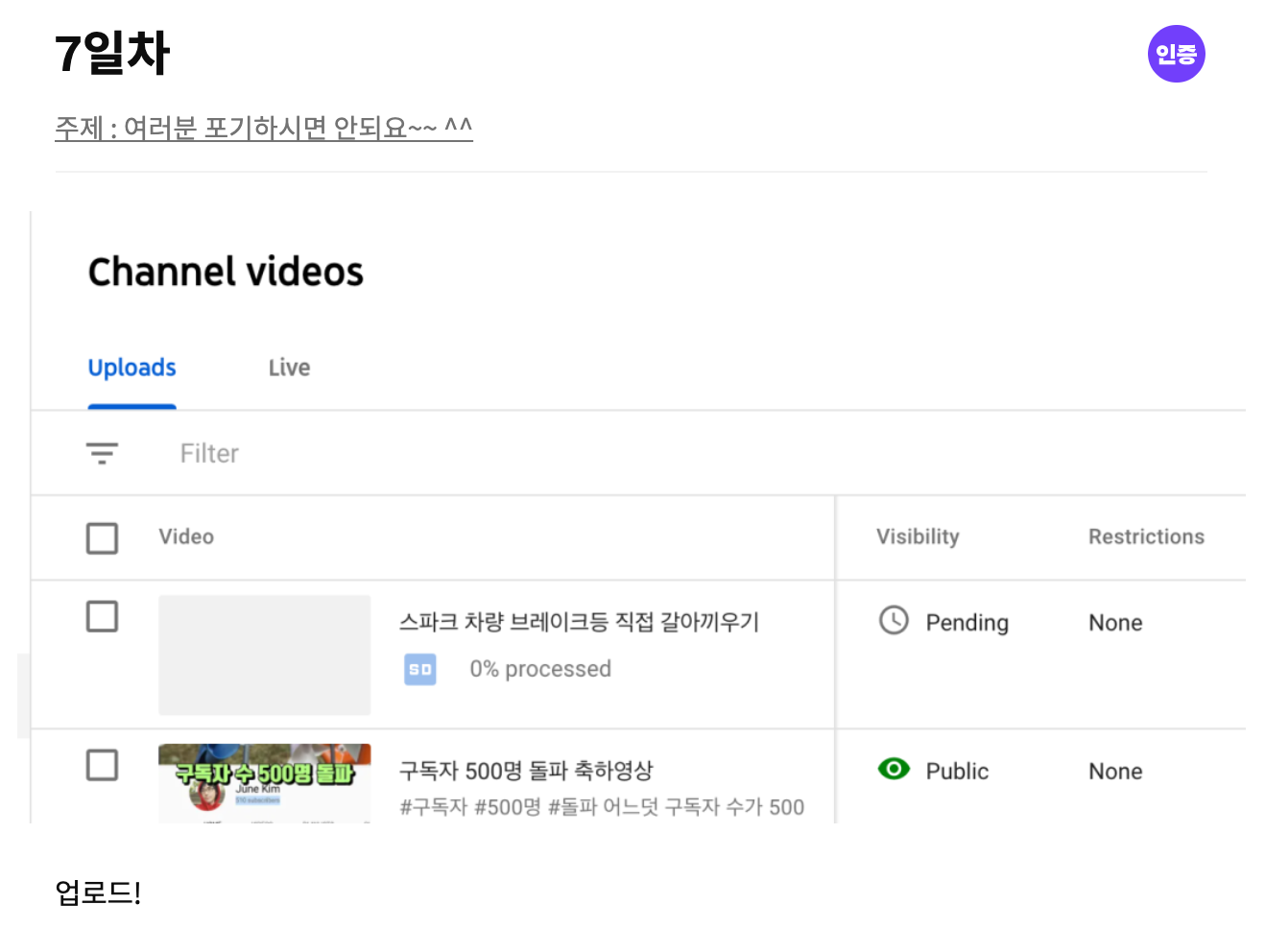카카오 프로젝트 100 유튜버 프로젝트 1주차 영상 업로드 후기