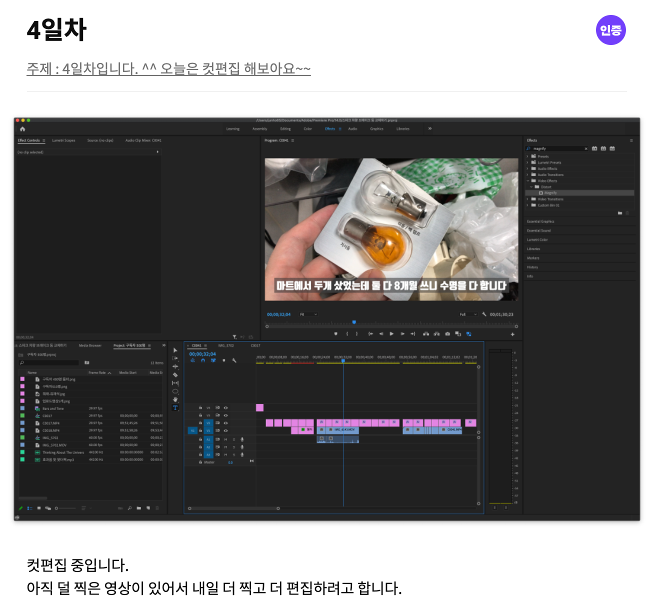 가장 중요한 영상을 이제야 촬영했습니다 ^^; 컷 편집, 자막 추가 작업을 진행했고요.