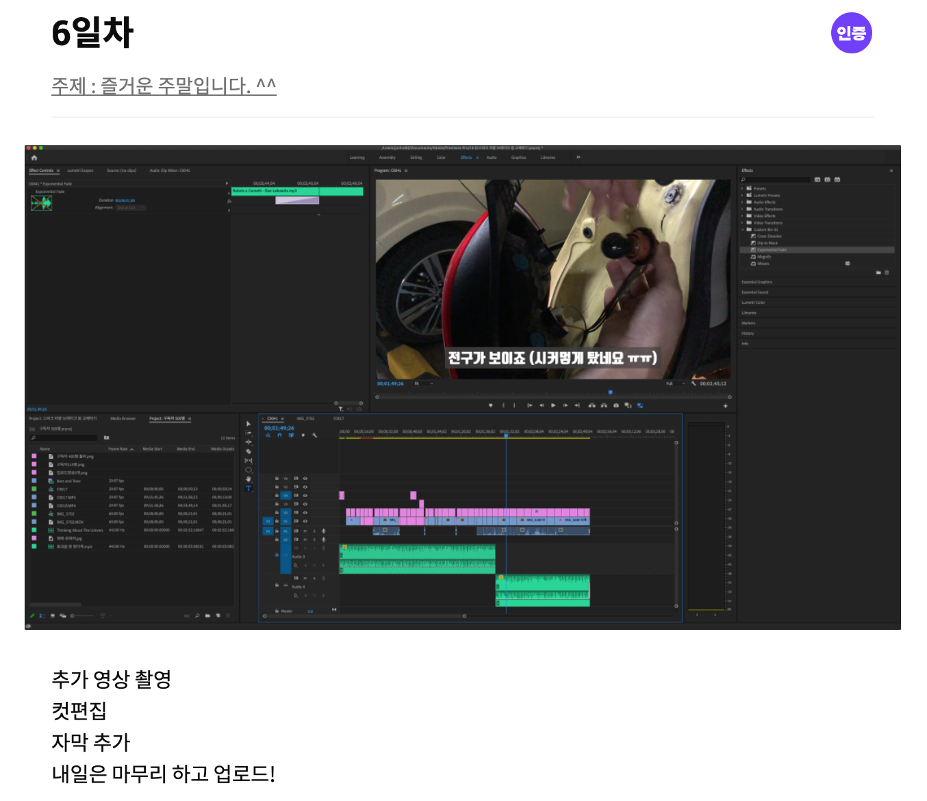 6일 차 - 추가 영상 촬영, 컷 편집, 자막 추가