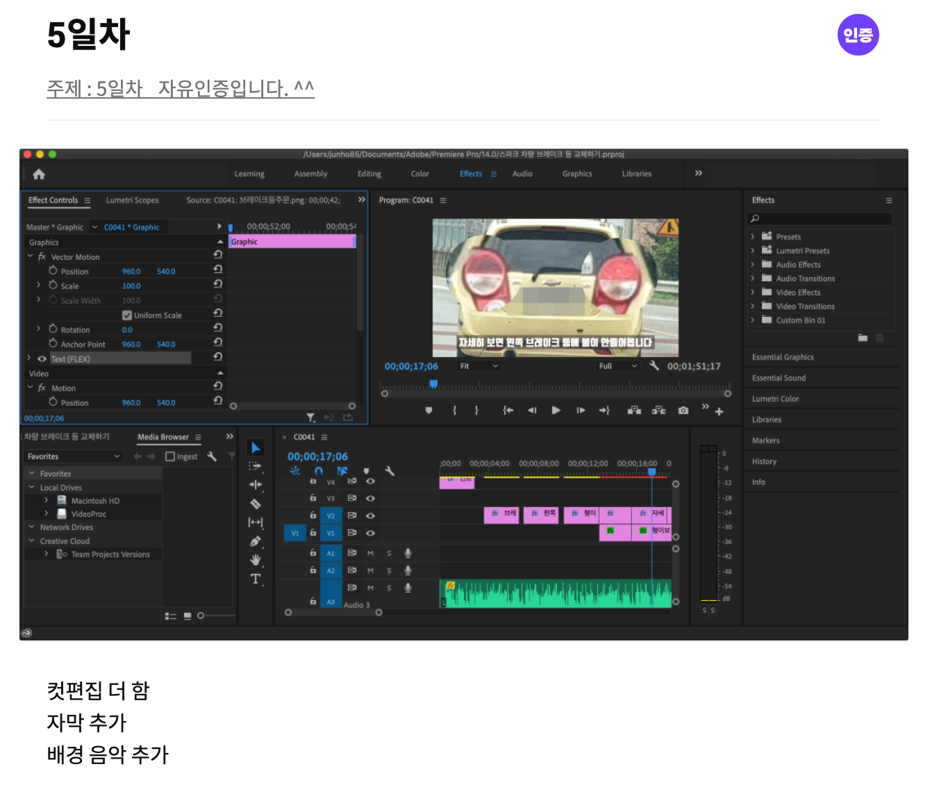 5일 차 - 컷 편집, 자막, 배경음악