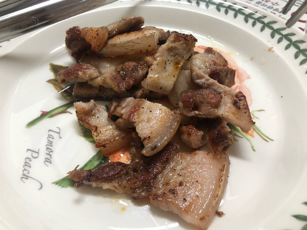 후추를 뿌려서 구운 모습입니다. 이건 3일 전에 구워 먹은 거고 오늘은 퇴근하고 집에 오니 목살과 삼겹살을 이미 먹고 얼마 안 남은 상태라 앞다리살을 구워 먹었습니다.