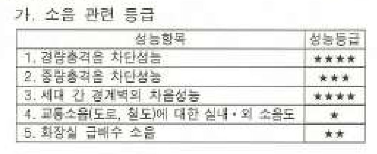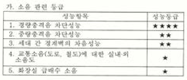 아무튼 이번에 찾은 모집공고에 있는 층간소음 등급정보입니다.