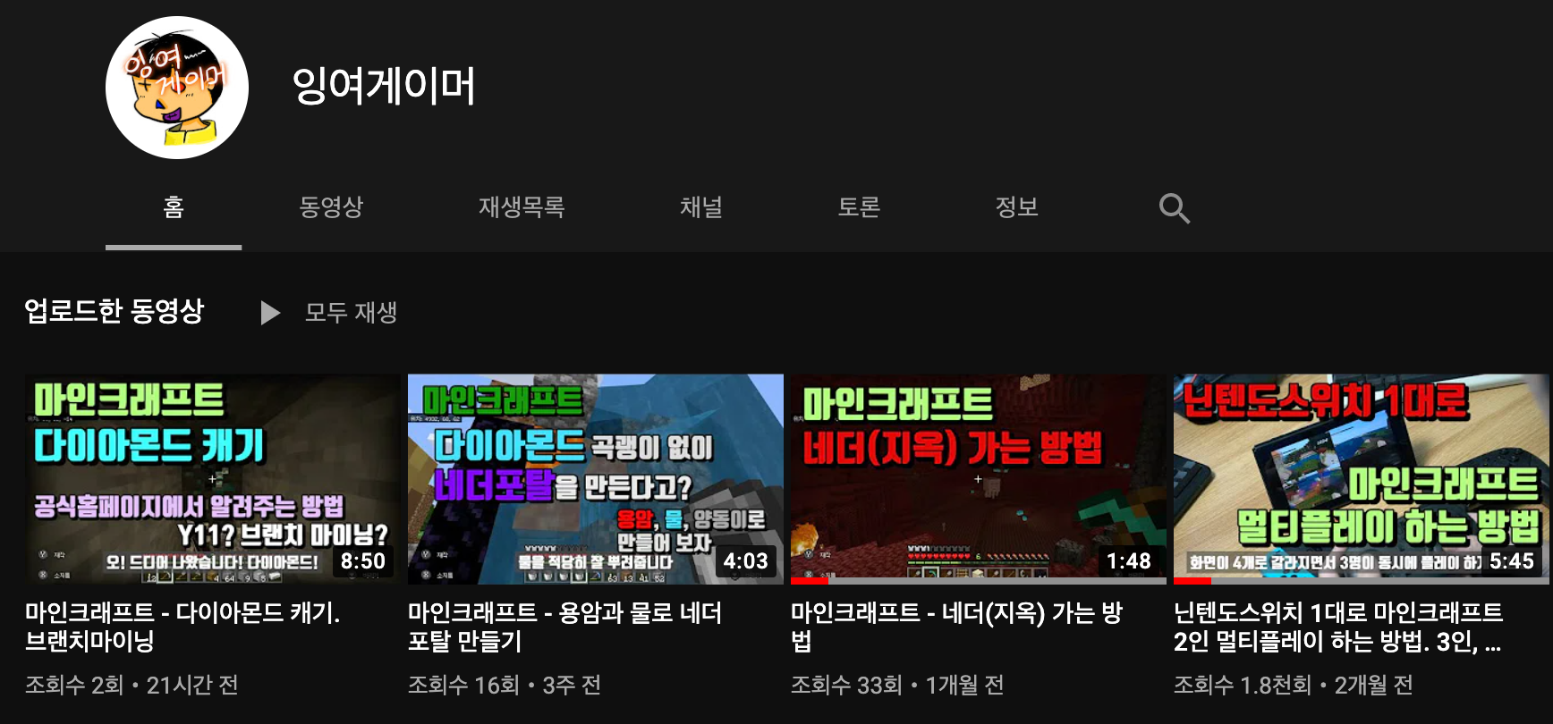 게임 채널에 영상을 4개 업로드했습니다.