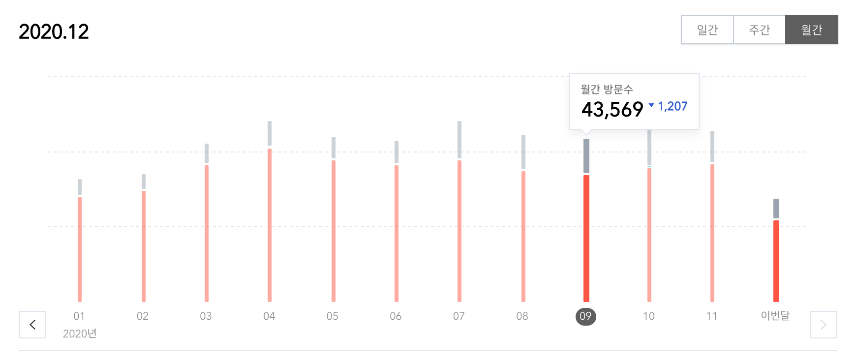 방문객 수는 크게 변동은 없습니다. 월간 방문객 수가 조금씩 떨어지고 있었는데 다시 살짝 상승추세로 가는 거 같습니다.