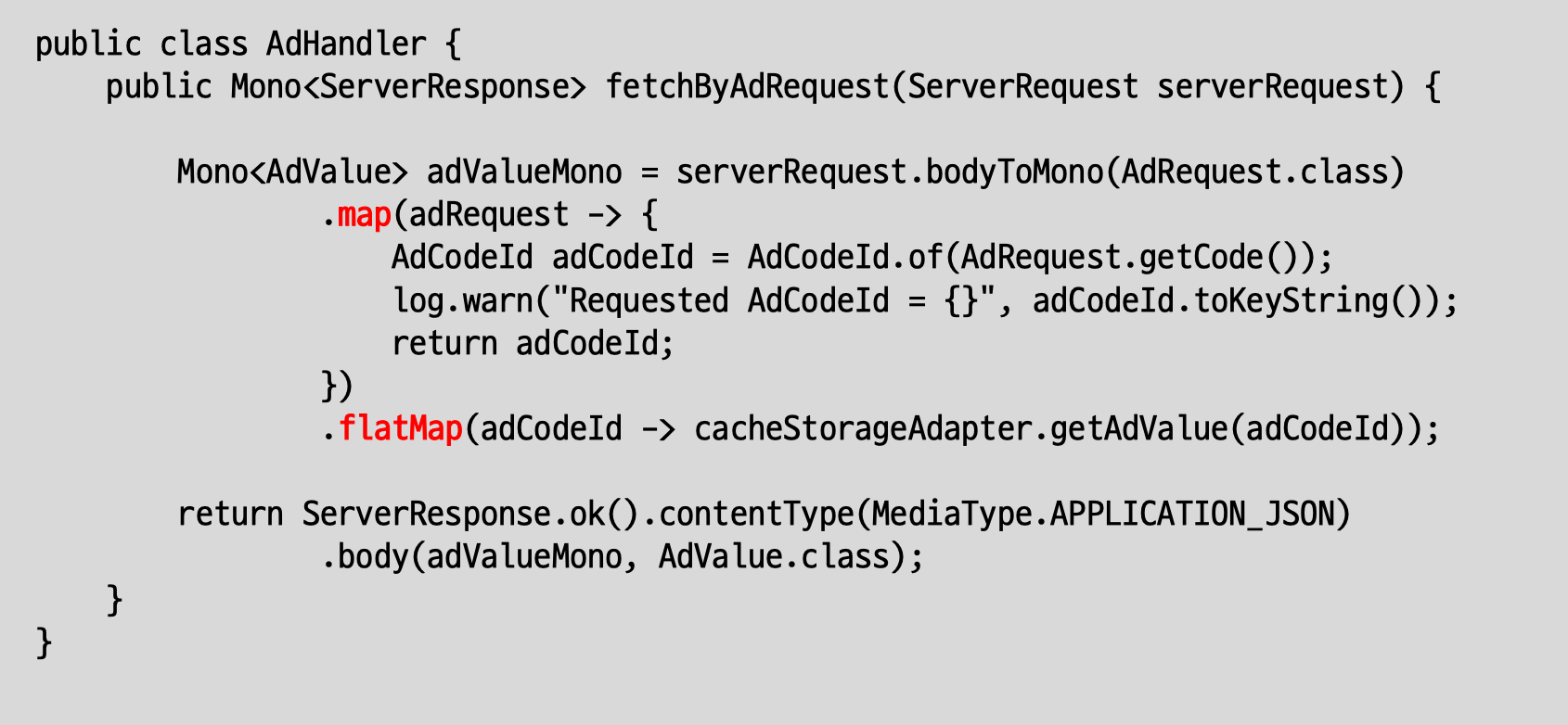 불필요한 map을 줄입니다. map에서 log를 남깁니다. 비동기 처리하는 부분은 flatMap으로 변경했습니다.
