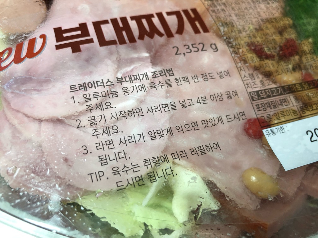 이마트 트레이더스에는 몇 가지 밀 키트를 판매하고 있습니다. 지난주에는 부대찌개를 사서 조리해 먹어 보았습니다.