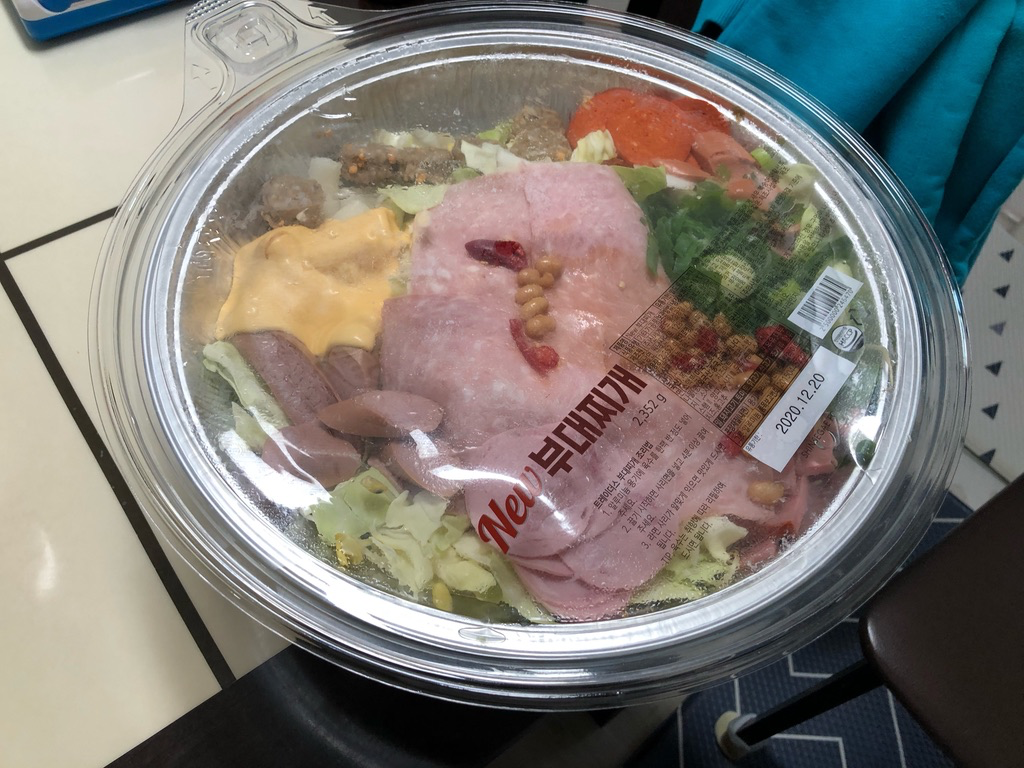 미묘하게 살짝 아쉬운 맛이긴 했지만 맛있게 잘 먹었네요. 개인적으로 콩나물이랑 고기완자는 좀 뺐으면 좋겠고요. 콩나물은 개인적으로 별로 안 좋아하기도 하는데 부대찌개랑은 더 안 어울리는 거 같습니다. 그리고 고기완자도 좀 별로였습니다. 심지어 치즈가 좀 박혀있었는데 더 안 어울리는 거 같습니다.