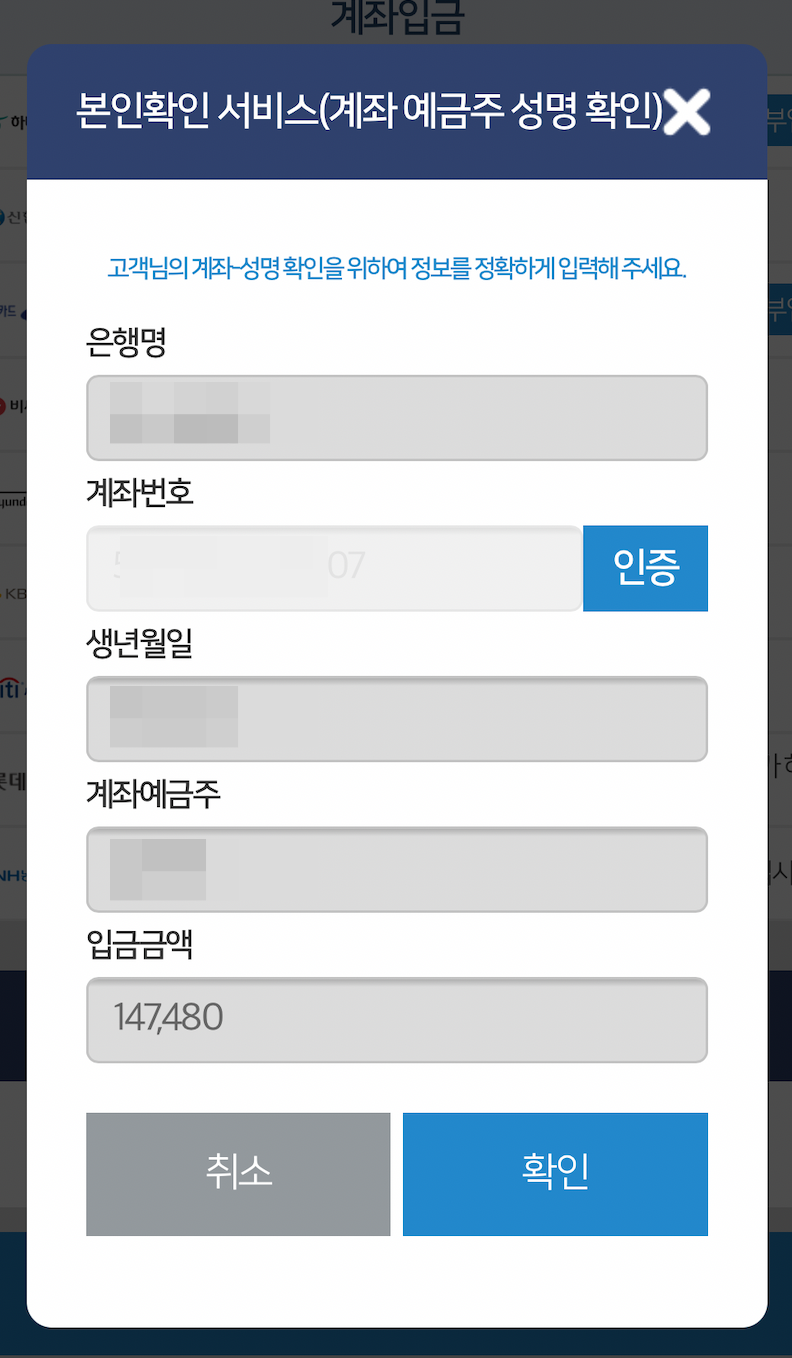 그리고 본인인증을 하고요.