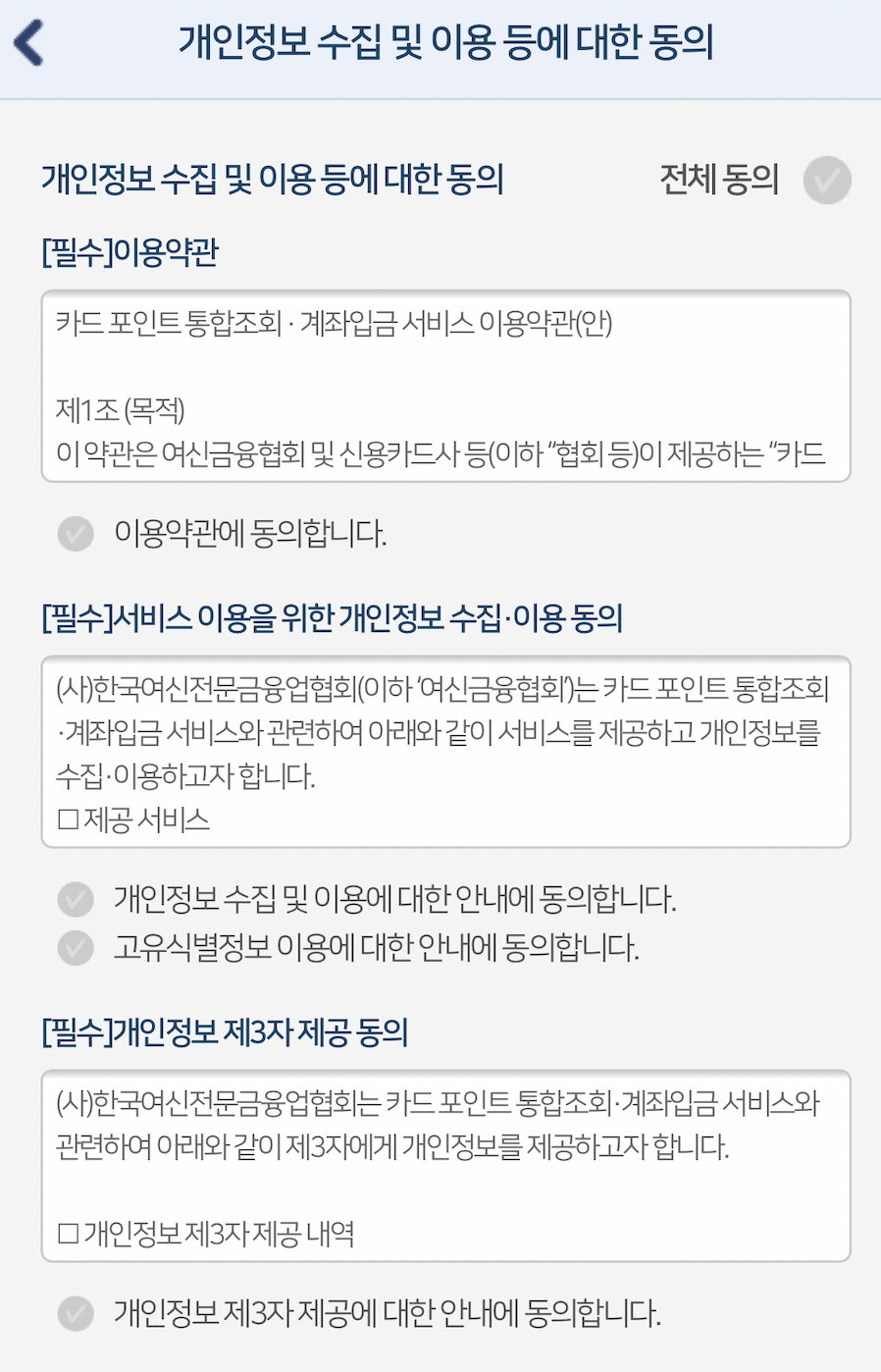 여신금융협회 카드 포인트 통합조회 사이트