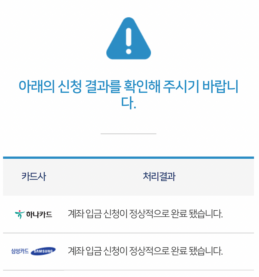 신청을 했으나 아직 입금이 되지는 않았습니다. 하루 지나서 입금이 될 거 같네요.