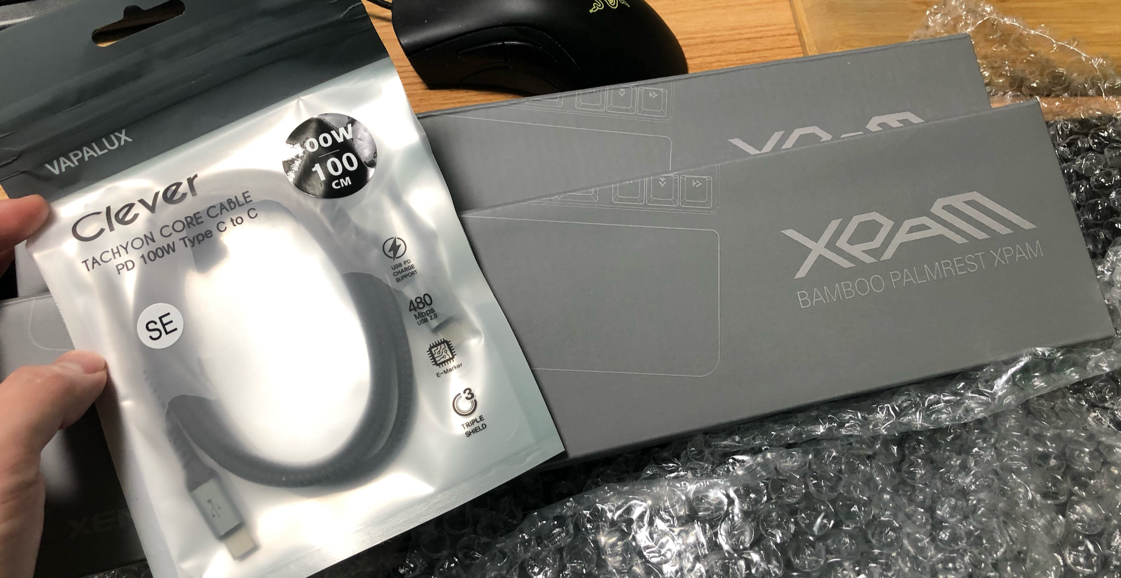 제닉스 XPAM 대나무 키보드 손목 받침대 두 개가 도착했습니다. (배송비 아낄 겸 USB Type C to C케이블도 같이 구입하였습니다.)