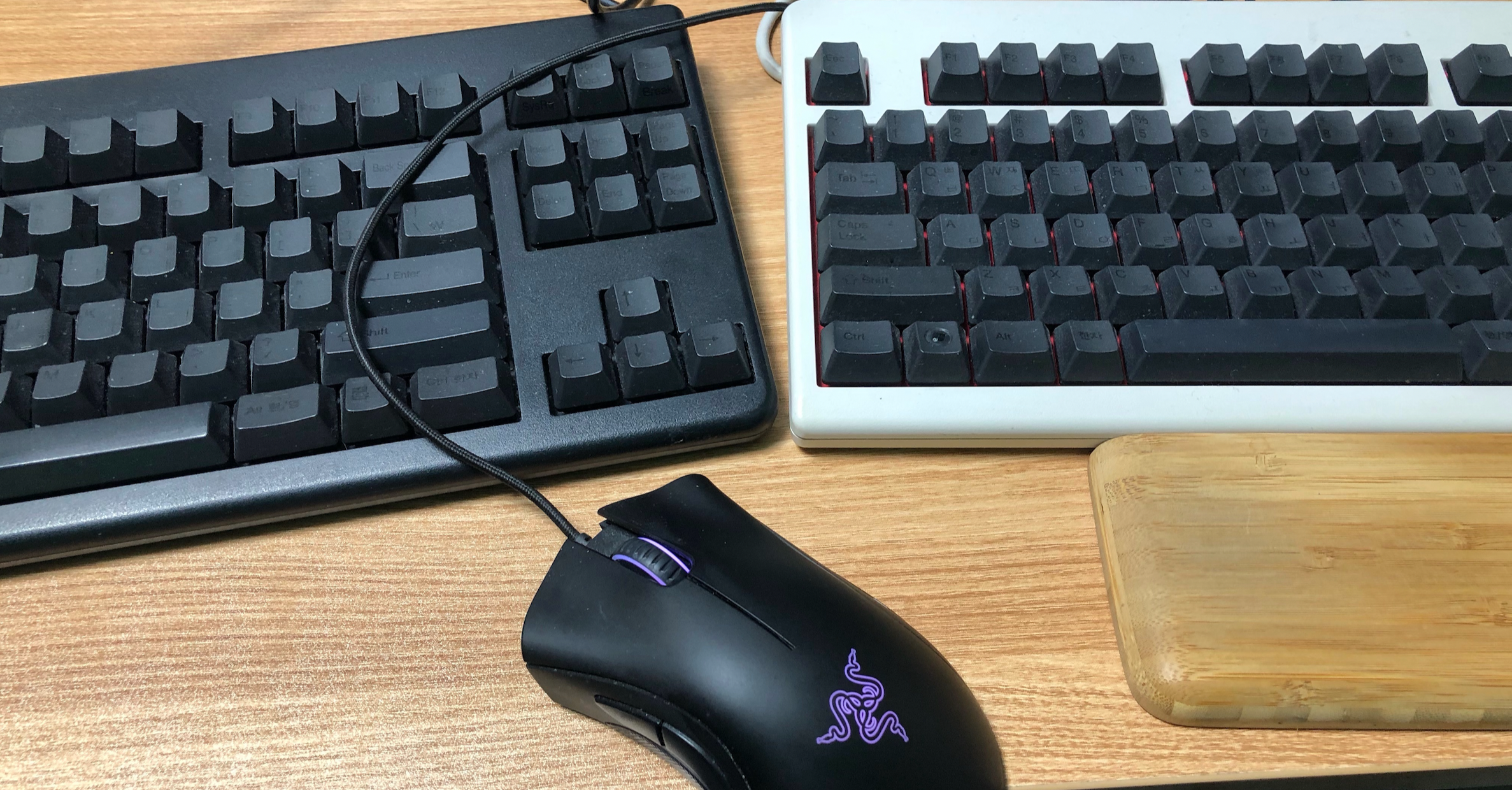 저는 키보드를 텐키리스와 풀 배열로 두 개를 사용하긴 하지만 텐키리스 사이즈로 두 개 구입하였습니다. 풀 배열 사이즈를 사용하면 너무 길고 마우스를 중간에 두고 사용하다 보니 중간에 마우스가 이동할 공간도 필요했거든요.