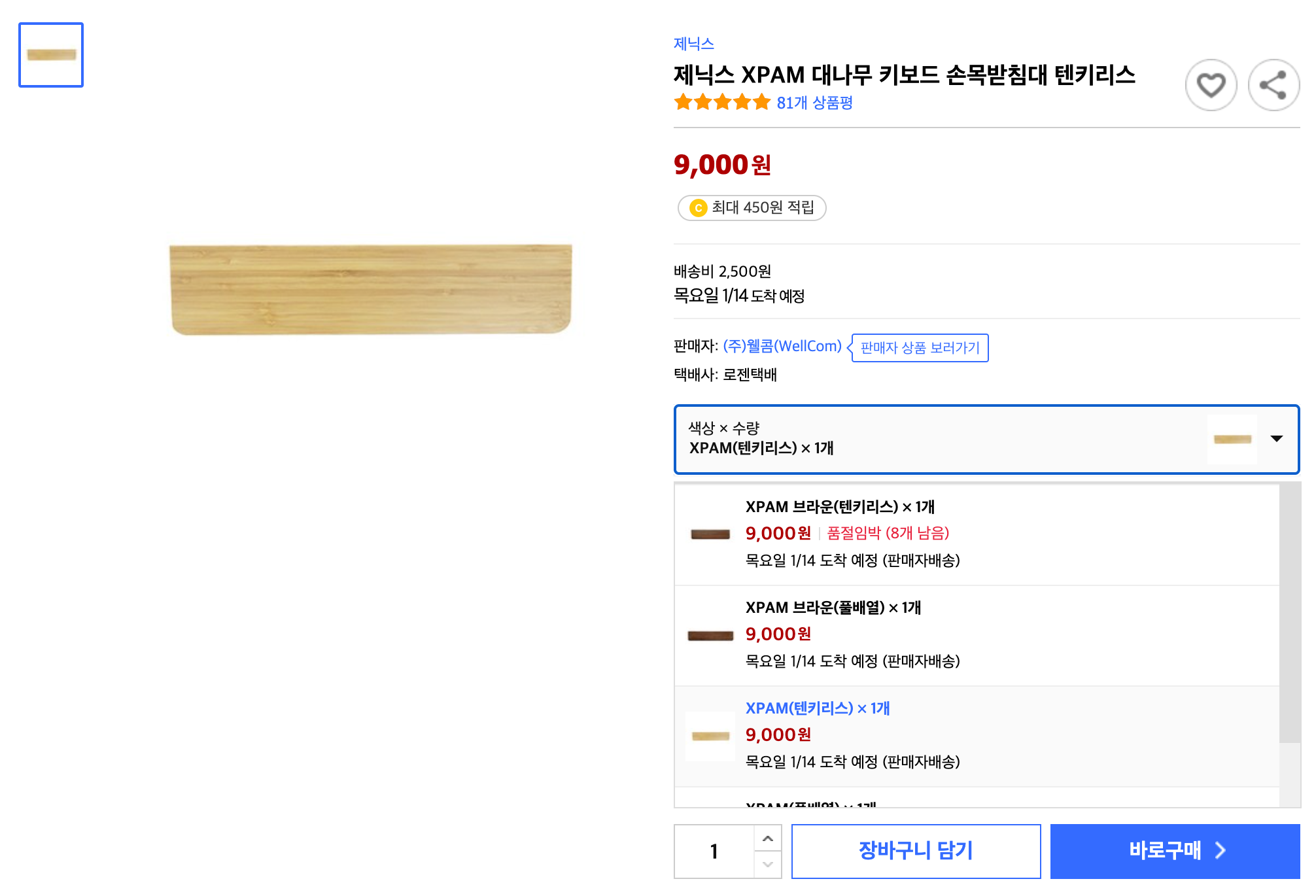 가격은 개당 9,000원이고 텐키리스 사이즈와 풀 배열 사이즈가 있고요. 브라운 색상의 제품도 있습니다.