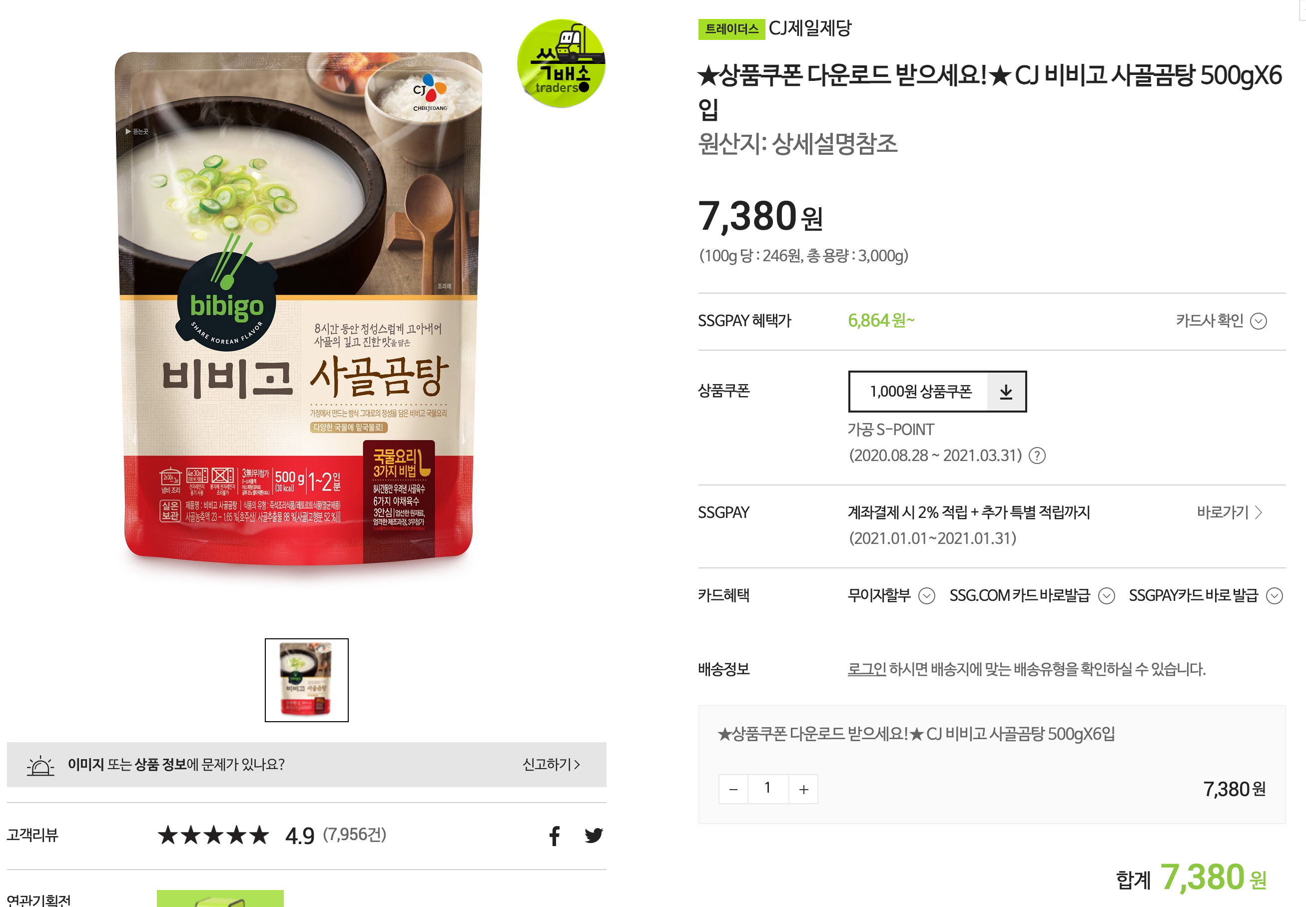 g당 가격이 2.1kg짜리 보다는 비싸지만 트레이더스 가격보다는 저렴합니다.