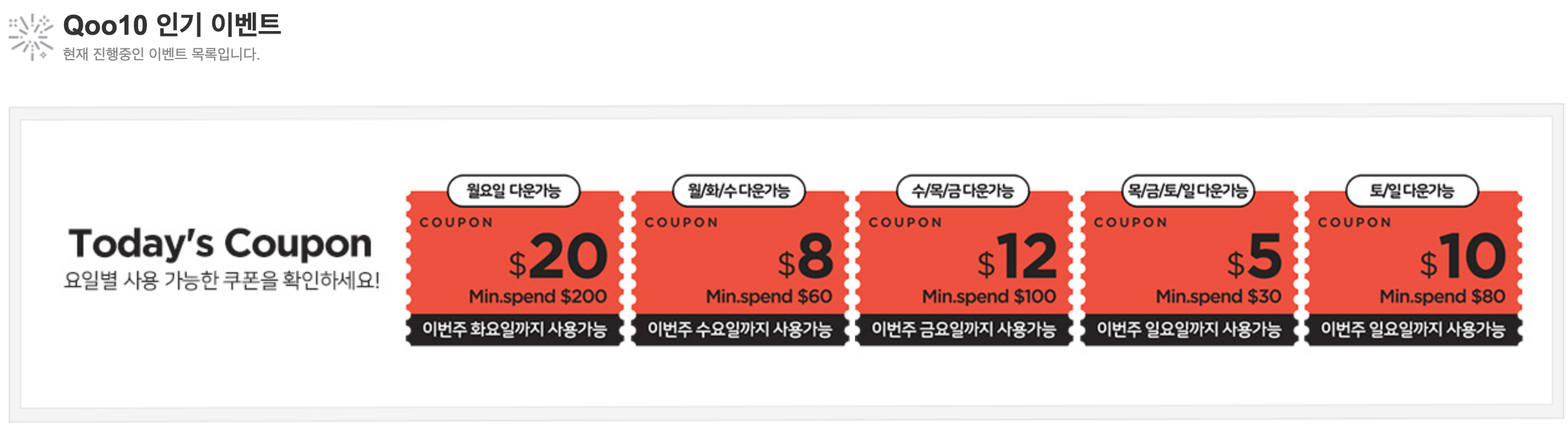Qoo10 할인 쿠폰 받기. $30이상 구매시 $5쿠폰은 꼭 챙기자
