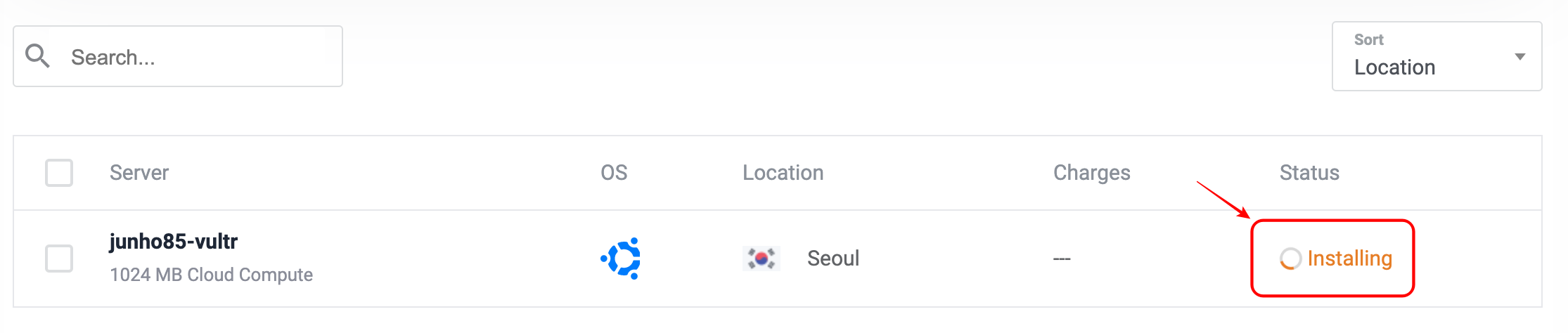 Status가 Installing으로 나옵니다.