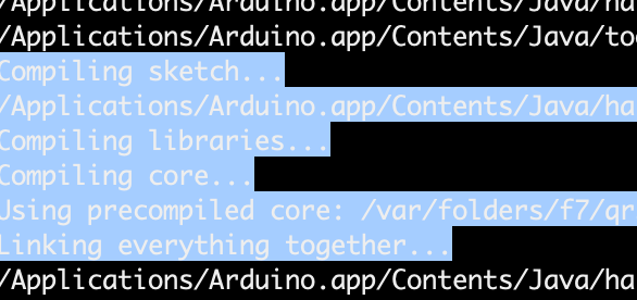 /Applications/Arduino.app/Contents/Java/hardware/tools/avr/bin/avr-g++ -c -g -Os -w -std=gnu++11 -fpermissive -fno-exceptions -ffunction-sections -fdata-sections -fno-threadsafe-statics -Wno-error=narrowing -flto -w -x c++ -E -CC -mmcu=atmega328p -DF_CPU=16000000L -DARDUINO=10813 -DARDUINO_AVR_UNO -DARDUINO_ARCH_AVR -I/Applications/Arduino.app/Contents/Java/hardware/arduino/avr/cores/arduino -I/Applications/Arduino.app/Contents/Java/hardware/arduino/avr/variants/standard /var/folders/f7/qrs7vm1n5pddvxcmxkl850ch0000gn/T/arduino_build_618791/sketch/LEA4_Blink.ino.cpp -o /dev/null -DARDUINO_LIB_DISCOVERY_PHASE