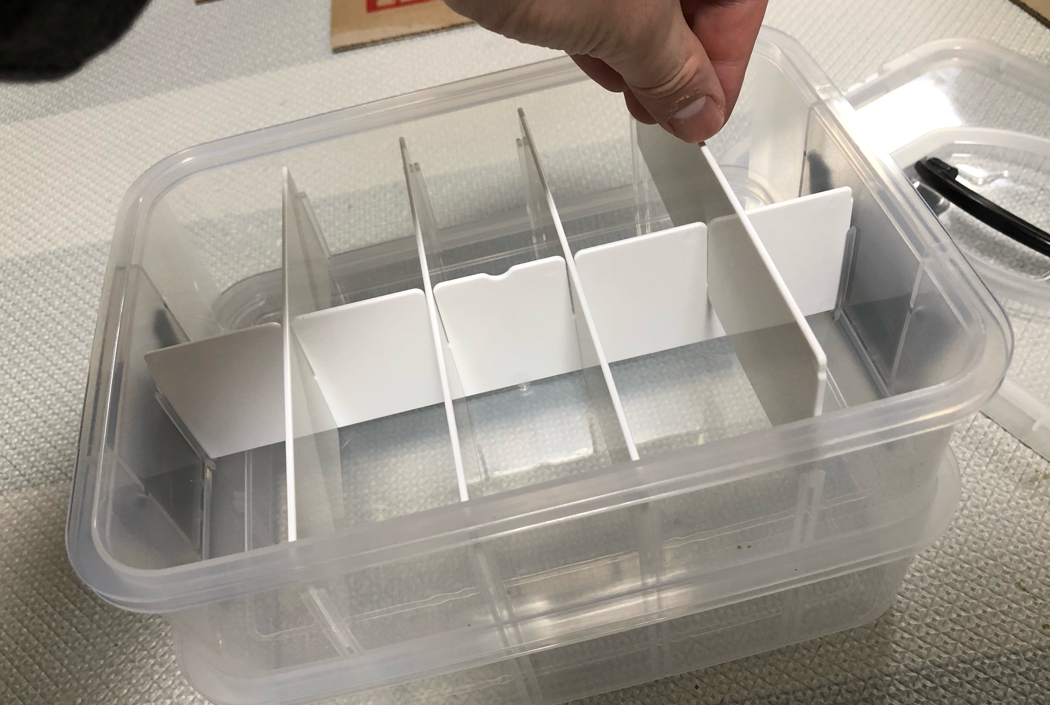 같은 방식으로 대 사이즈 통의 칸막이도 다 끼웠습니다.