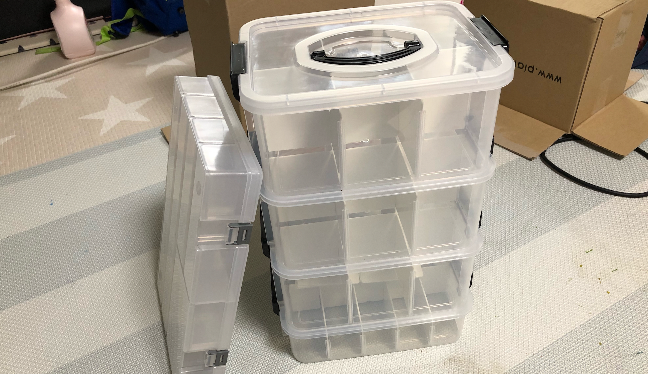 플라팜 미니 리빙 박스 3단 소, 대. 레고 부품 정리함