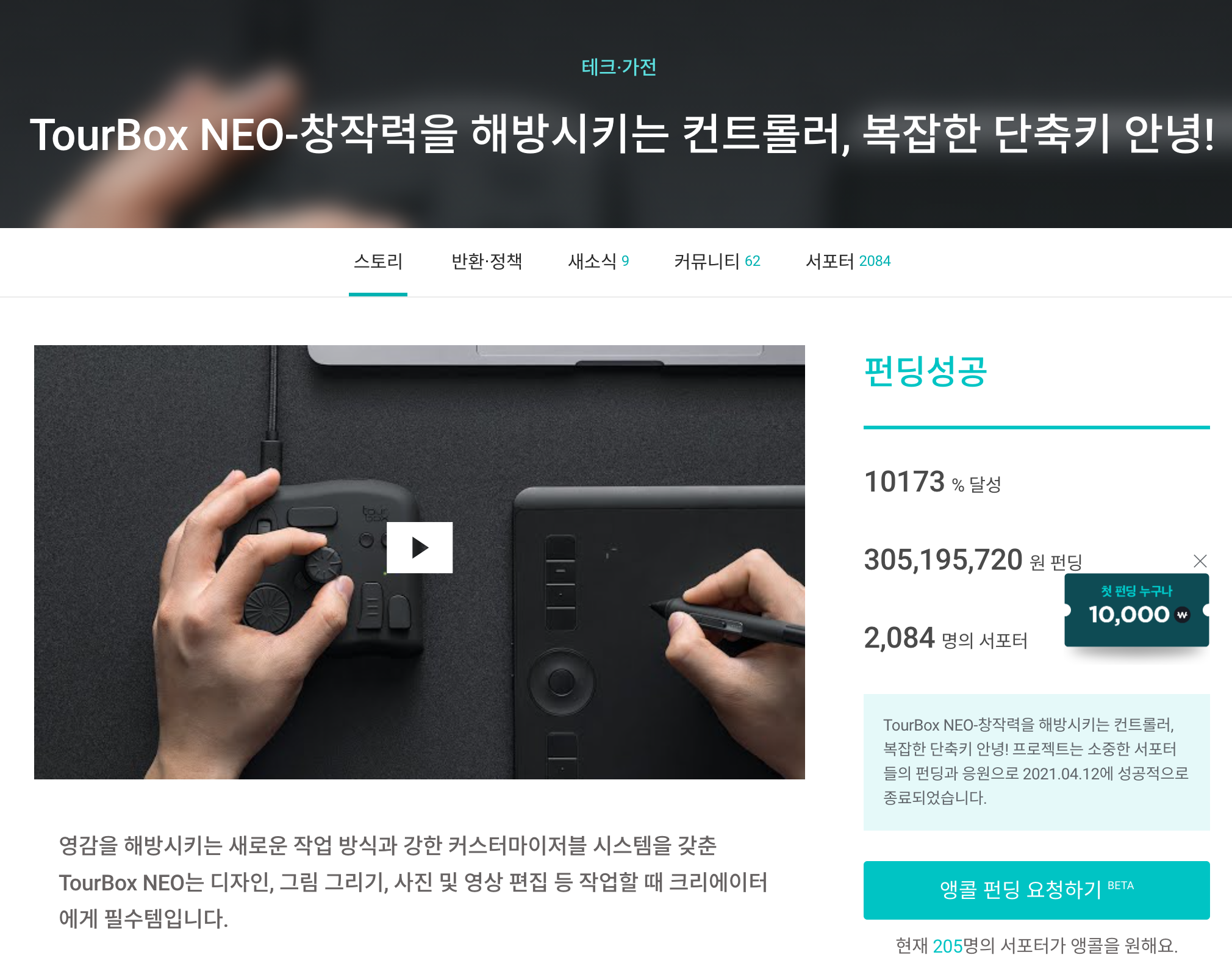 와디즈 펀딩으로 구입했습니다. 급하면 해외 직구로 구입할 수도 있는 거 같긴 하지만 뭐 급한 거도 없고 Wadiz 통해서 구입하는 게 더 저렴해 보여서 Wadiz에서 구입하였습니다.