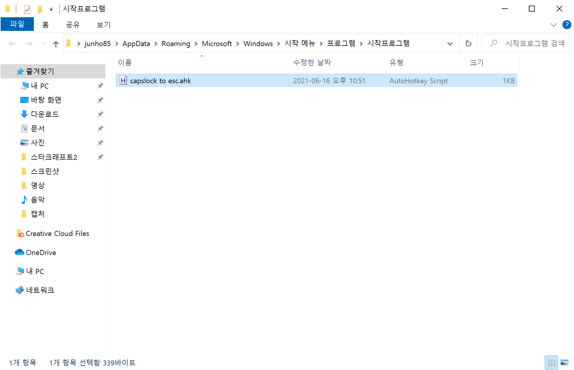 윈도우10 AutoHotKey로 CapsLock키를 ESC키로 맵핑. 시작프로그램에 등록하기
