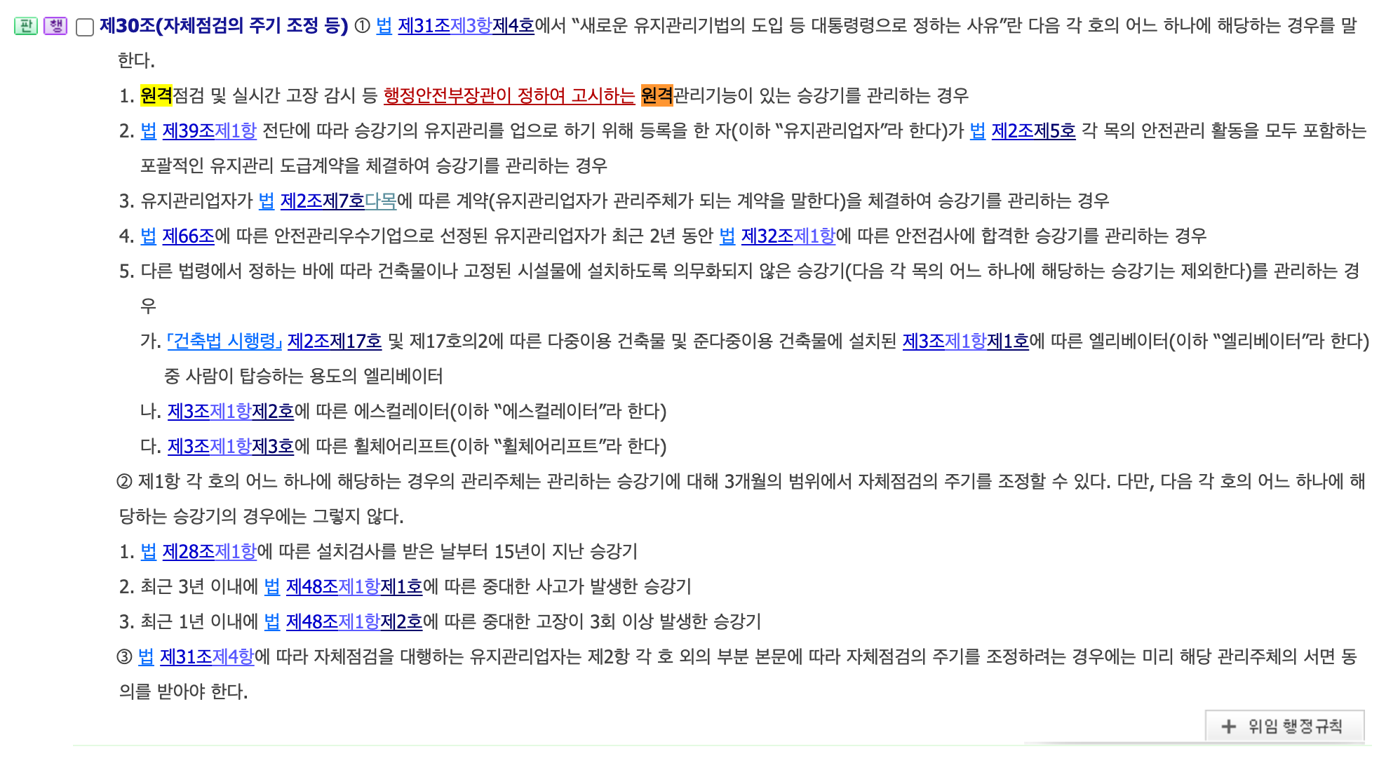 그리고 원격관리를 하는 경우에 대한 승강기 안전관리법 시행령이 있는데 자세한 내용은 모르겠지만 일단 첨부해 둡니다.