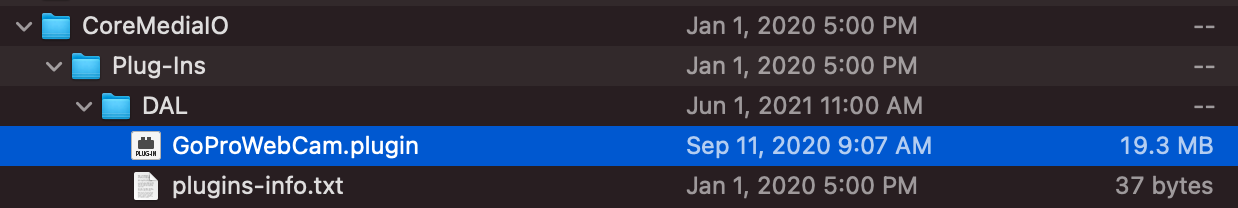 Finder에서 /Library/CoreMediaIO/Plug-Ins/DAL/GoProWebCam.plugin 을 찾아서 삭제합니다.