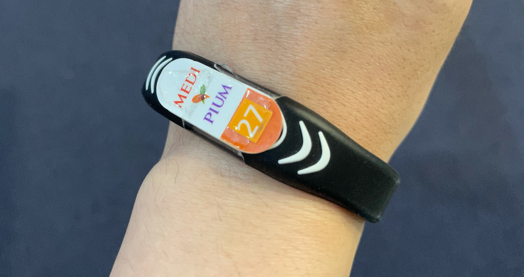 병원에 방문하면 이런 팔찌를 줍니다. 옷장을 열 때도 사용하지만 검사를 받으러 다닐 때 항목별로 대기를 할 때 사용합니다.