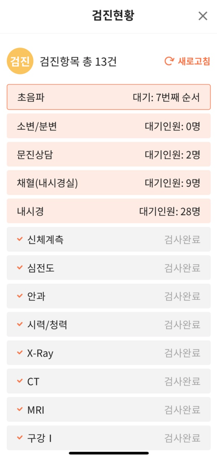 예를 들어 초음파 검사실에 가서 팔찌를 찍고 나면 앱에서 대기자 정보가 나타납니다.