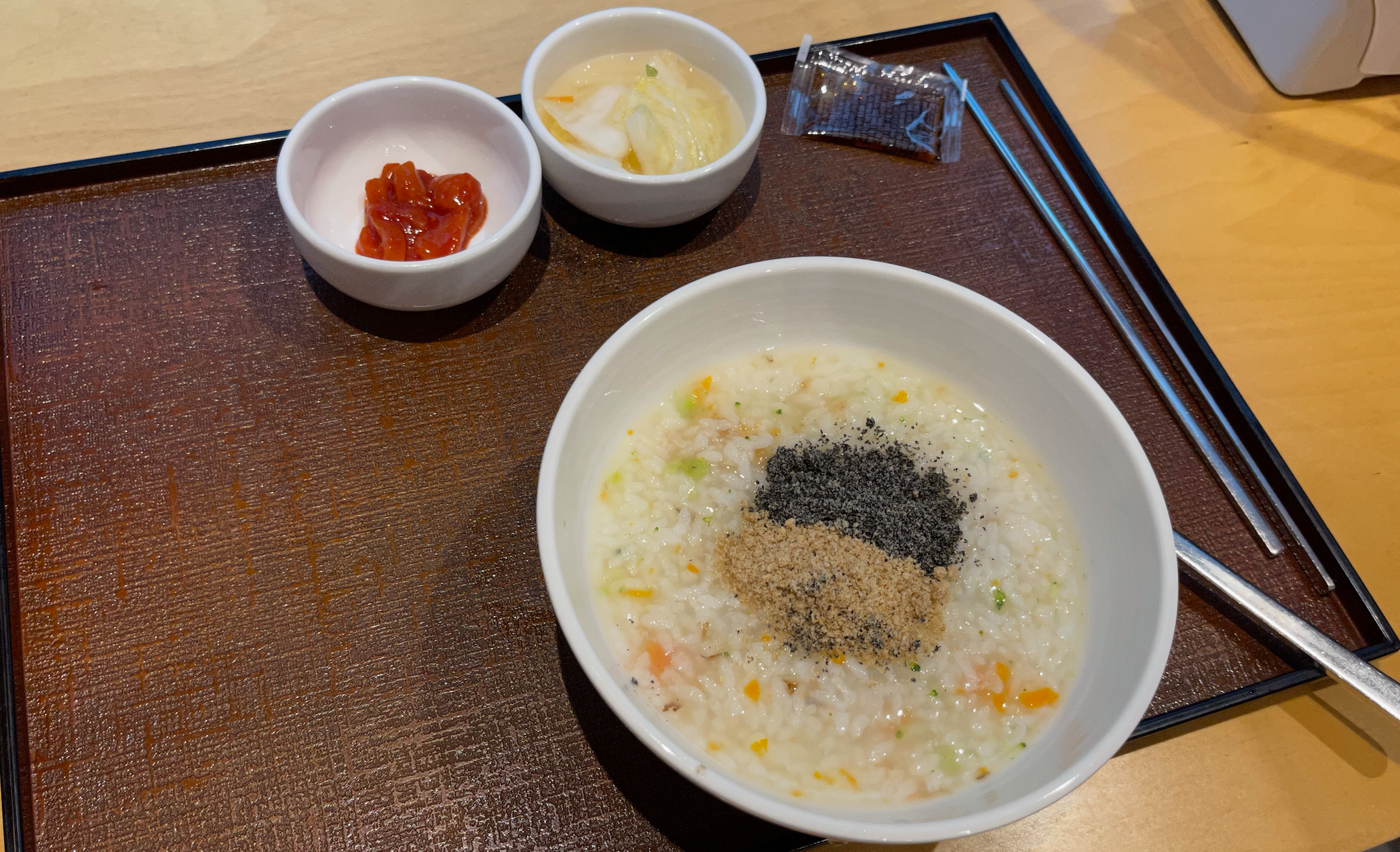 코로나 때문에 죽을 먹지 않고 단백질 음료를 받아갈 수도 있더군요.